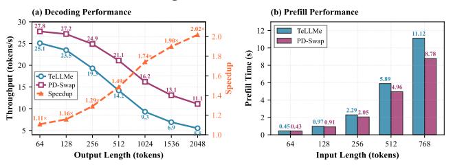 有效重配置开销下降约 75%。KV260BitNet 0.73BVitis HLS 2024.1 + Vivado 2024.1TeLLMedecode throughput、TTFT / prefill time、resource breakdown